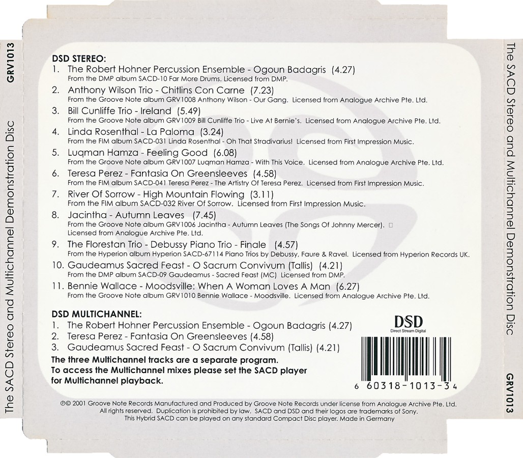 The SACD Stereo and Multichannel Demonstration Disc [GRV1013-3 • DE • 2001 • Demo] |