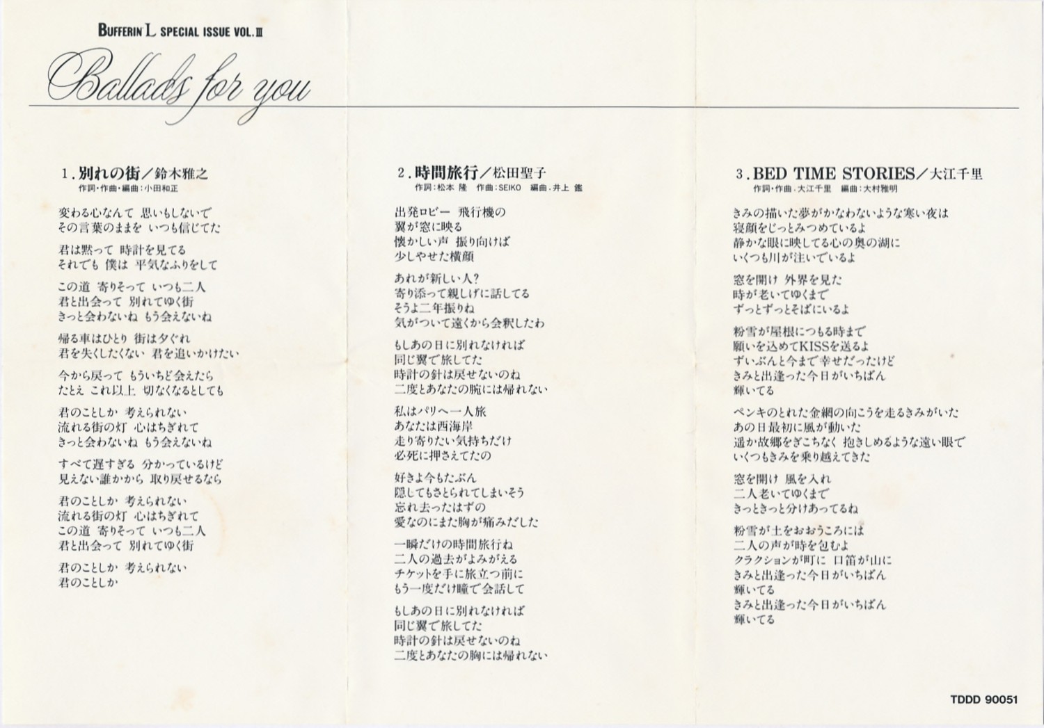 Ballads For You - Bufferin L Special Issue Vol.III [TDDD-90051 • JP • 1992 • Promo] |